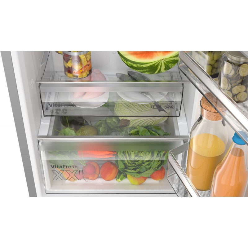 No Frost hladilnik z zamrzovalnikom spodaj in VitaFresh predalom: ohranja vaša živila dlje časa sveža.