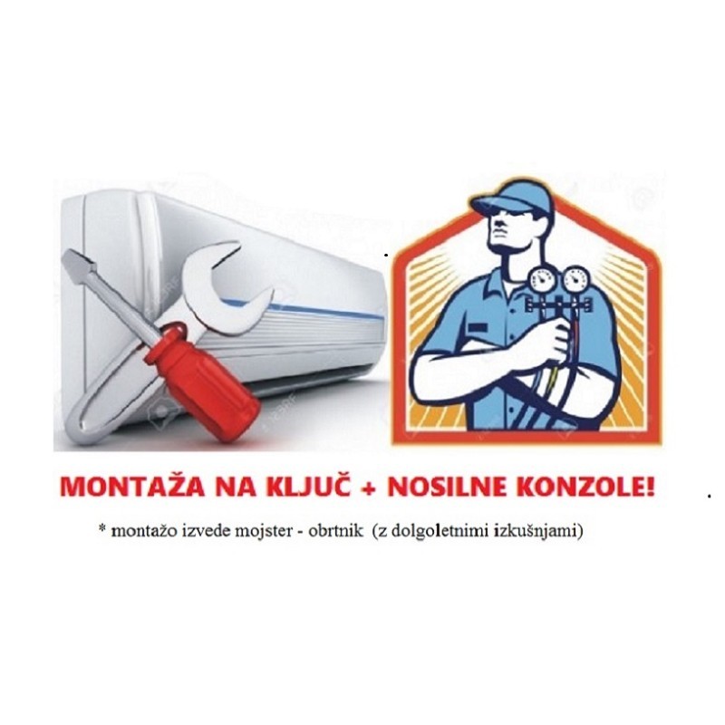 celotna montaža klimatske naprave z materijalom na ključ obsega: