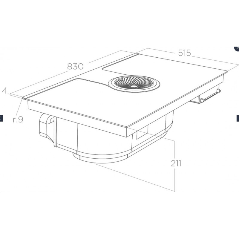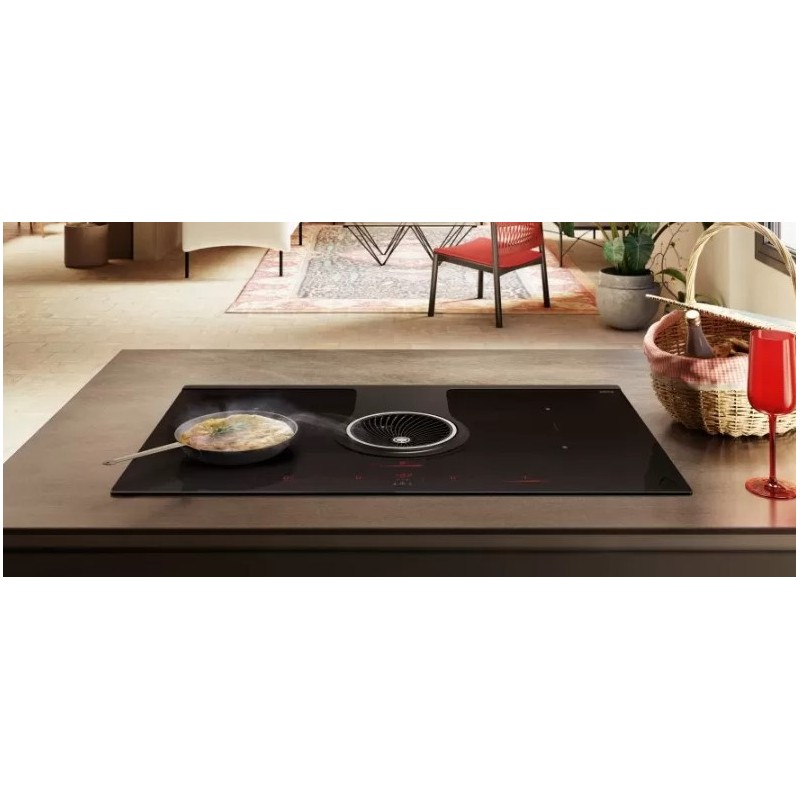 Indukcijska kuhalna plošča z napo, črna mat, 83 cm.