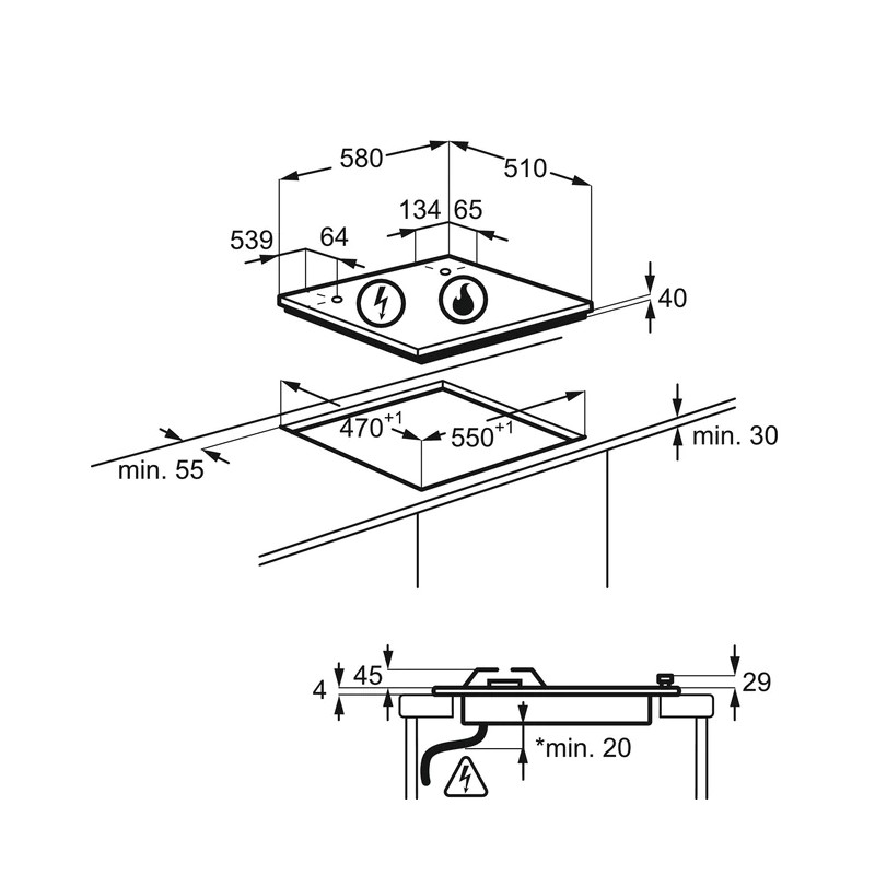 Vgradne mere (VXŠXG) v mm: 41x550x470