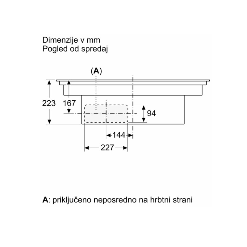 Vgradne dimenzije (VxŠxG): 223 mm x 750 mm x 490 mm
