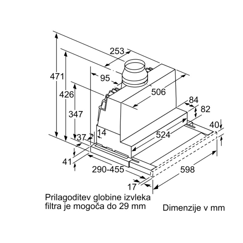Teleskopska napa: komaj vidna, vgrajena v stensko omaro, kar zagotavlja jasen dizajn kuhinje.