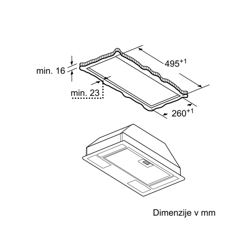 Vgradne dimenzije (VxŠxG): 208 x 493 x 257 mm