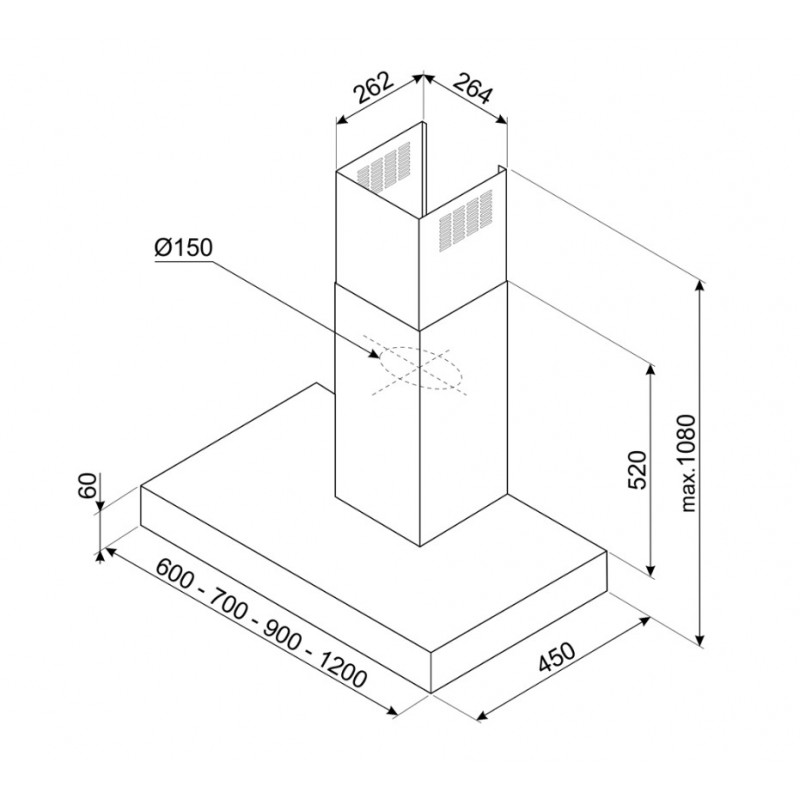 Ventilacijski izhod:150 mm