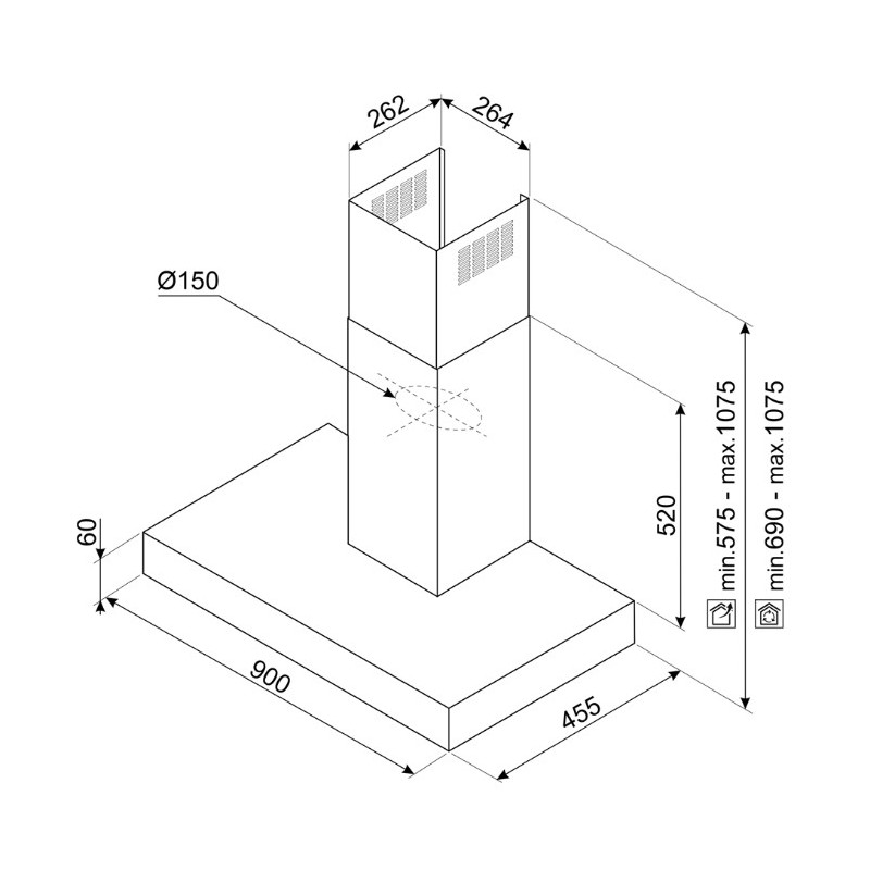 Ventilacijski izhod:150 mm