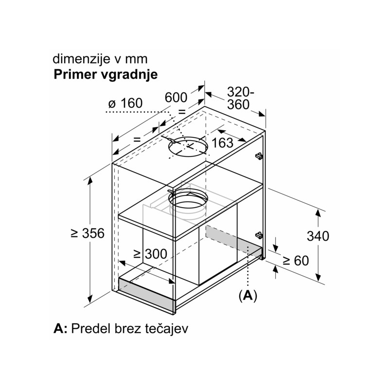 | Za vgradnjo v visečo omarico (širine 60 cm) |