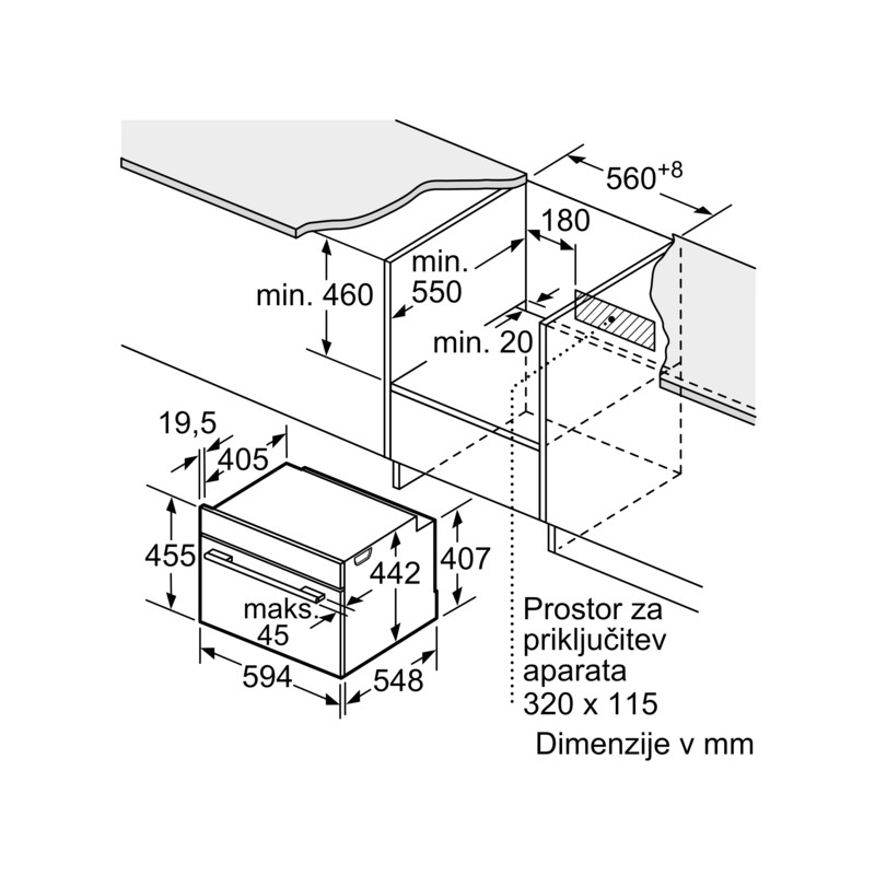 | Dimenzije niše (VxŠxG): 450 mm - 455 mm x 560 mm - 568 mm x 550 mm |