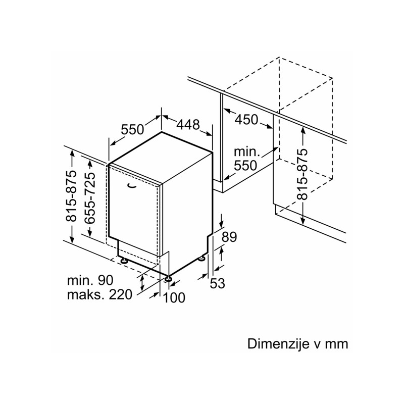 | Minimalna višina vgradne niše |