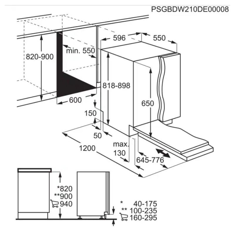Mere vgradih aparatov V(min/maks) xŠxG(mm): 820/900 x 600 x 550