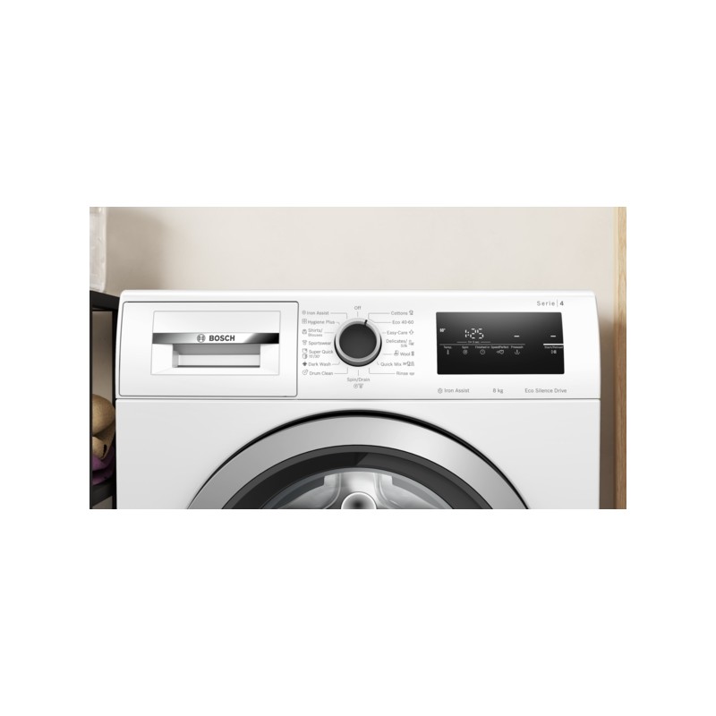 | Posebni programi: Čiščenje bobna (z opomnikom), Temno perilo, Iron Assist, Srajce/bluze, Higiena Plus, Ožemanje/črpanje, Hitro/mešano, Šport/fitnes, Izpiranje, Ekstra kratek 15'/30', Občutljivo/svila, Volna/ročno pranje |