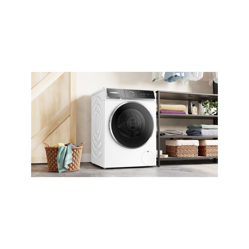 Zelo učinkovit pralni stroj s tehnologijo i-DOS in detergent scan, ki ga poganja Home Connect, varčuje z vodo in detergentom. Poveča vaše prihranke energije z učinkovitostjo A -20%* in zahvaljujoč parnemu programu Iron Assist zmanjšuje vaš kup za likanje.
