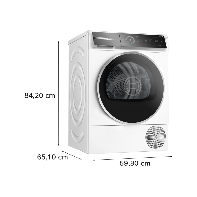 Sušilni stroj s toplotno črpalko, ki zagotavlja stalno nizko porabo energije s samodejnim čiščenjem kondenzatorja in skrbi za vaša oblačila zahvaljujoč funkcijama Auto Dry in Smart Dry.