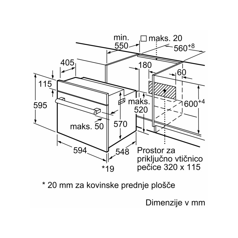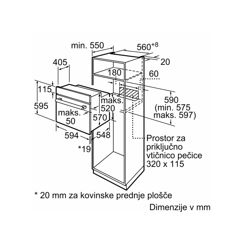 | Dimenzije niše (VxŠxG): 575 mm - 597 mm x 560 mm - 568 mm x 550 mm |