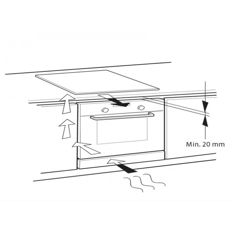 Pred vgradnjo aparata je potrebno v območju vgradne odprtine z zadnjega dela korpusa kuhinjskega elementa odstraniti zadnjo steno. Dno pohištvenega elementa (max 530 mm) mora biti vedno